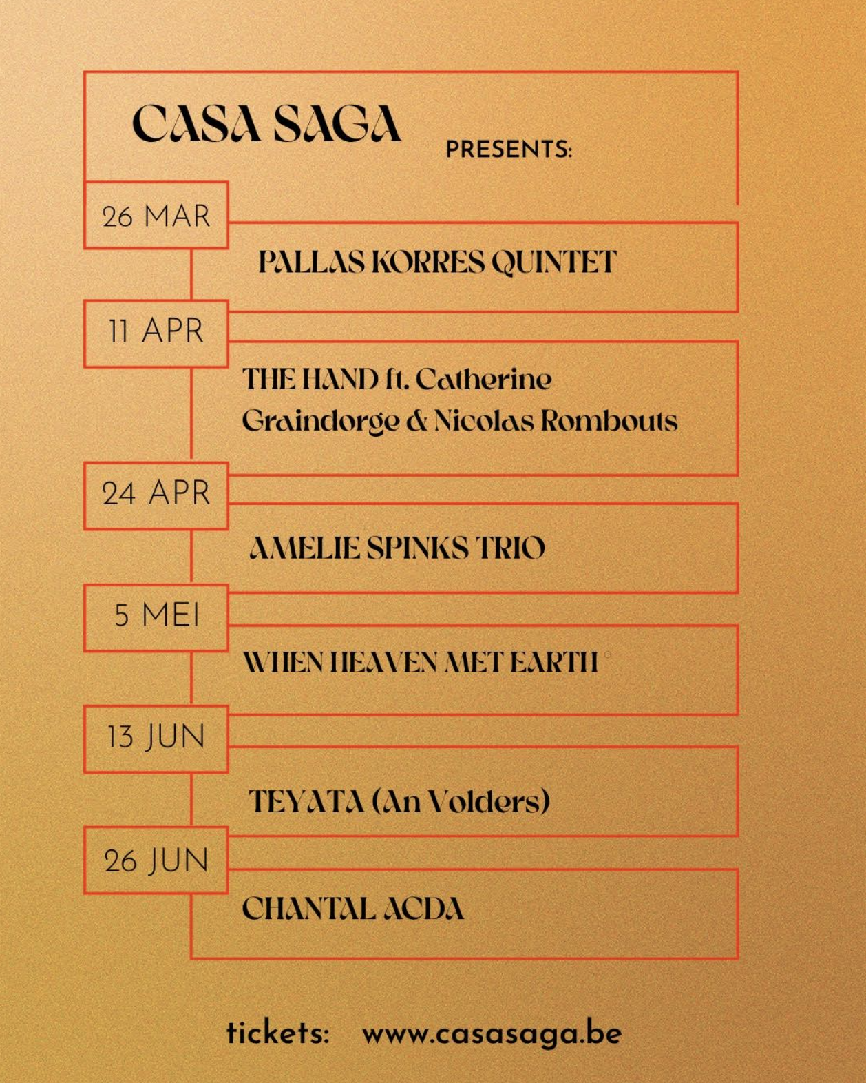 CASA SAGA werd in 2022 opgericht op initiatief van B.O.X , een ensemble dat samenwerking in het DNA heeft zitten. De naam verwijst naar ‘SÁGA’, een legendarische song-cyclus van Dez Mona & B.O.X over de zoektocht naar een thuis en het gevoel van thuiskomen.